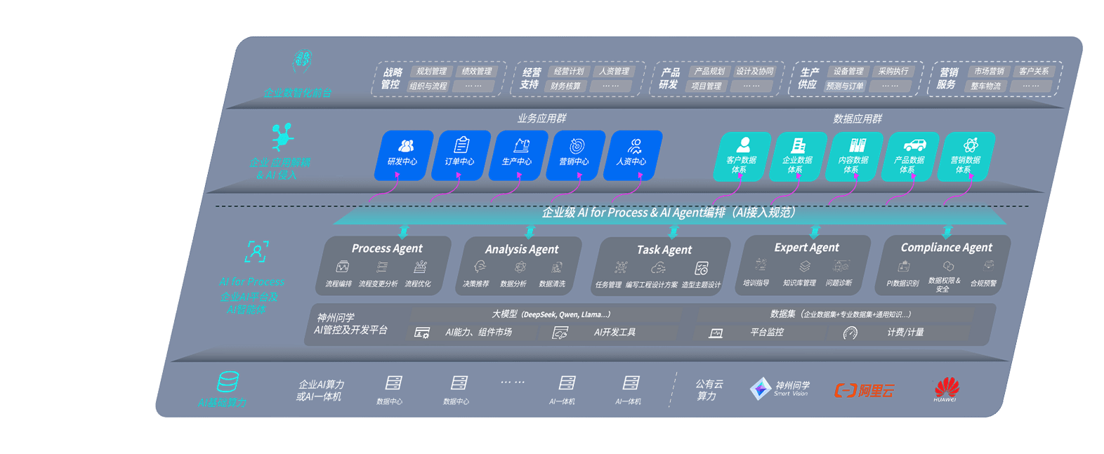 尊龙z6问学智车解决方案是一套基于AI技术的汽车行业智能化系统,,,覆盖从底层算力到顶层AI应用的全栈方案。。。方案由算力层、、、、模型层和应用层组成:算力层,,方案支持多种一体机配置,,,具备云端灵活部署、、、、多云适配以及动态优化计算资源的能力;模型层,,,尊龙z6问学平台版提供了企业级AI应用一站式构建与管理平台,,支持基于后训练强化技术的汽车企业专属模型的训练、、、评测和运营;应用层,,尊龙z6问学DeepSeek版提供包括超级员工、、、智能招采、、、智能营销、、、智能客服、、、、AI for BI等一系列解决方案,,,可助力汽车行业实现数字化转型,,,让管理更智能、、、、响应更敏捷。。。
